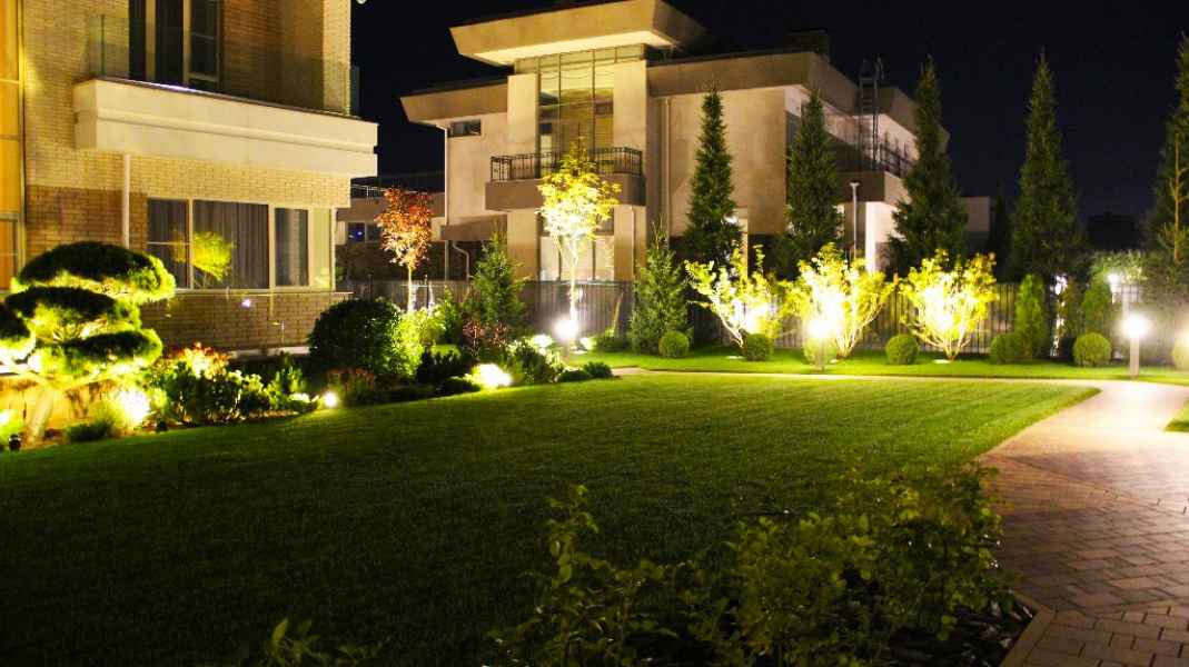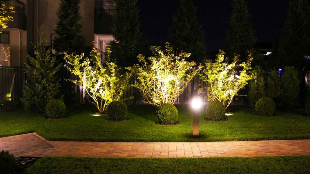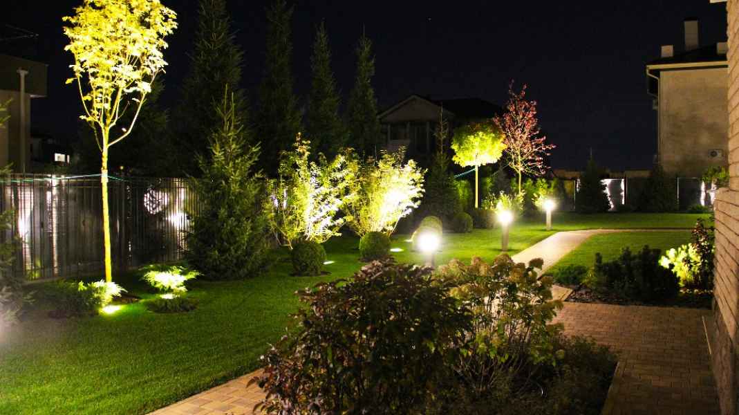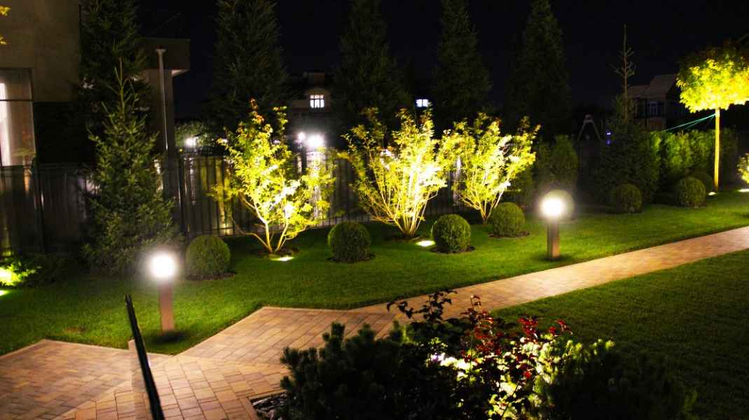 Устройство функционального и ландшафтного освещения на участке является неотъемлемой частью в современной архитектуре сада. На этапе ландшафтного проектирования качественно продуманное освещение позволит увидеть ночную картину сада совсем иначе… На данном участке реализовано два варианта освещения: функциональное (освещение дорожно-тропиночной сети), которое позволяет безопасно перемещаться по участку в тёмное время суток и ландшафтное (точечное и заливающее освещение растений) – для эффектного подчеркивания разных видов декоративных хвойных и лиственных деревьев и кустарников. Система уличного освещения вписана в систему умного дома и является неотъемлемой частью жизнеобеспечения. Продуманное и правильно реализованное ландшафтное освещение даёт возможность насладиться эстетично подсвеченной кроной и ветвлением формованного растения.