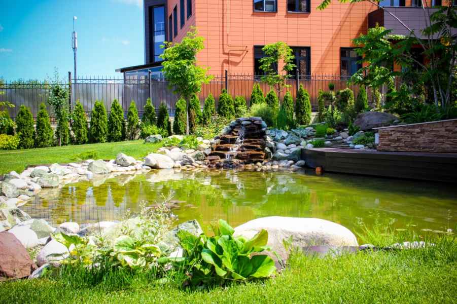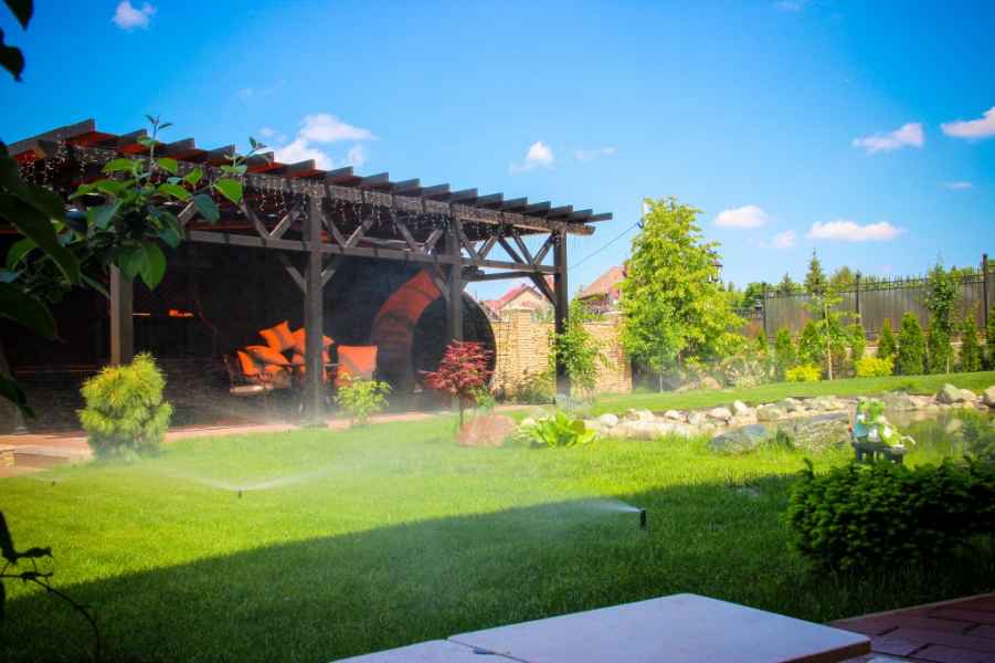 Комплексное проектирование и благоустройство территории велось с активным участием владельца будущего сада. Пейзажный стиль сада максимально приближен к естественной природной среде. Плавные линии дорожек и подпорных стен, декоративные композиции, водоем, цветники, плодовые деревья и кустарники, малые архитектурные формы, идеально ровный газон – все это позволяет насладиться отдыхом в любом уголке сада. Система жизнеобеспечения сада полностью автоматизирована и не требует больших затрат на содержание.
