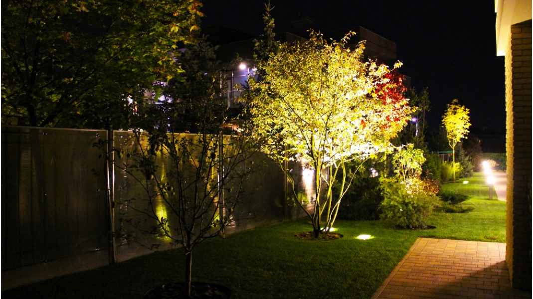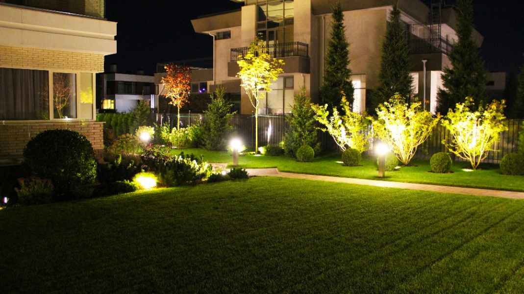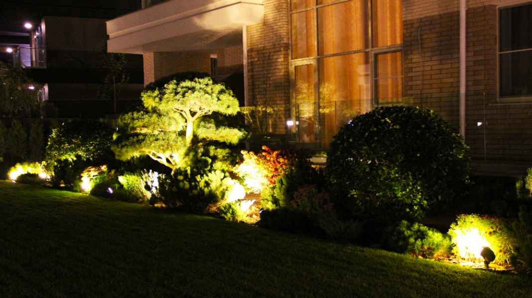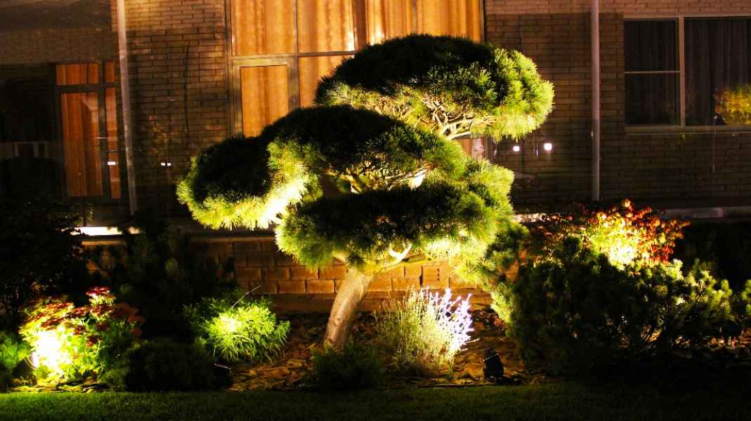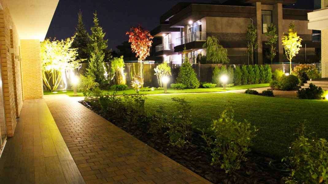 Устройство функционального и ландшафтного освещения на участке является неотъемлемой частью в современной архитектуре сада. На этапе ландшафтного проектирования качественно продуманное освещение позволит увидеть ночную картину сада совсем иначе… На данном участке реализовано два варианта освещения: функциональное (освещение дорожно-тропиночной сети), которое позволяет безопасно перемещаться по участку в тёмное время суток и ландшафтное (точечное и заливающее освещение растений) – для эффектного подчеркивания разных видов декоративных хвойных и лиственных деревьев и кустарников. Система уличного освещения вписана в систему умного дома и является неотъемлемой частью жизнеобеспечения. Продуманное и правильно реализованное ландшафтное освещение даёт возможность насладиться эстетично подсвеченной кроной и ветвлением формованного растения.