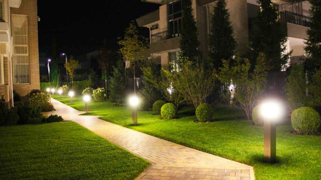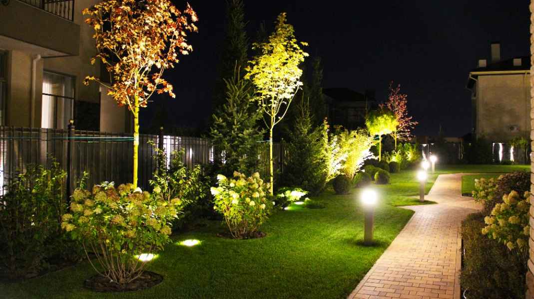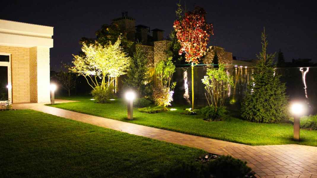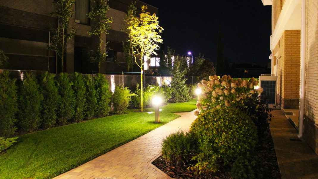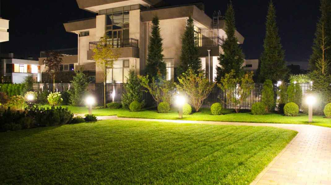Устройство функционального и ландшафтного освещения на участке является неотъемлемой частью в современной архитектуре сада. На этапе ландшафтного проектирования качественно продуманное освещение позволит увидеть ночную картину сада совсем иначе… На данном участке реализовано два варианта освещения: функциональное (освещение дорожно-тропиночной сети), которое позволяет безопасно перемещаться по участку в тёмное время суток и ландшафтное (точечное и заливающее освещение растений) – для эффектного подчеркивания разных видов декоративных хвойных и лиственных деревьев и кустарников. Система уличного освещения вписана в систему умного дома и является неотъемлемой частью жизнеобеспечения. Продуманное и правильно реализованное ландшафтное освещение даёт возможность насладиться эстетично подсвеченной кроной и ветвлением формованного растения.