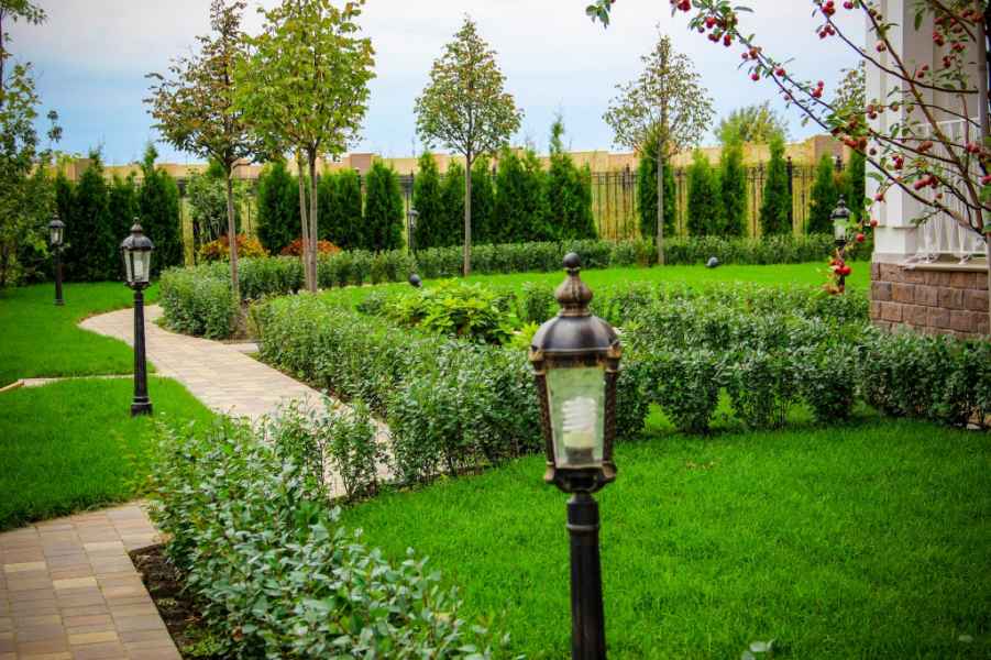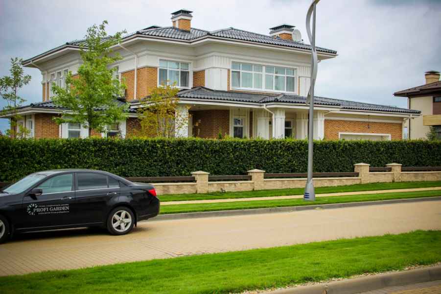 Комплексное проектирование, благоустройство и озеленение загородного участка в элитном коттеджном поселке ведется с активным участием владельца будущего сада. Изюминкой проекта стал пейзажный стиль с элементами регулярного сада. Полное озеленение и зону отдыха сад обретет в будущем году. В процессе сервисного обслуживания некоторые растения приобретут идеально стриженные формы, которые присуще регулярному стилю, а ландшафтная подсветка подчеркнёт всю красоту формированным деревьям. Плавные линии дорожек, декоративные композиции, плодовые деревья и кустарники, идеально ровный газон – все это позволит насладиться отдыхом в любом уголке сада. Система жизнеобеспечения сада полностью автоматизирована и не требует больших затрат на содержание.