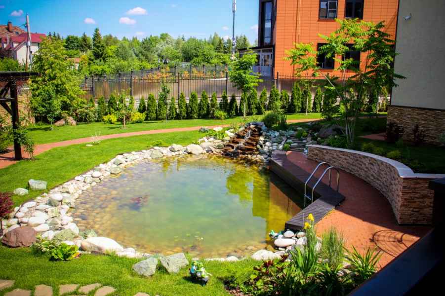 Комплексное проектирование и благоустройство территории велось с активным участием владельца будущего сада. Пейзажный стиль сада максимально приближен к естественной природной среде. Плавные линии дорожек и подпорных стен, декоративные композиции, водоем, цветники, плодовые деревья и кустарники, малые архитектурные формы, идеально ровный газон – все это позволяет насладиться отдыхом в любом уголке сада. Система жизнеобеспечения сада полностью автоматизирована и не требует больших затрат на содержание.